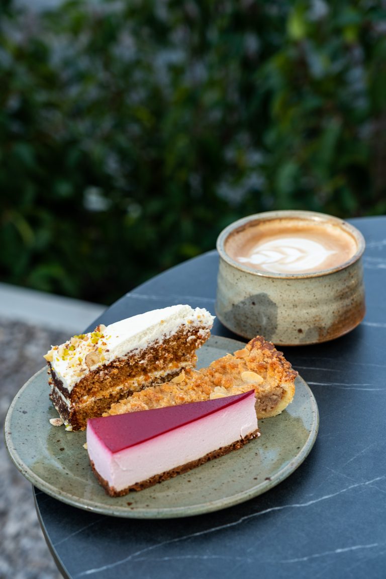 warme drank / vers fruitsap / croissant / brood met boter & confituur / kleine yoghurt met vers fruit / en uiteraard…een taartje!